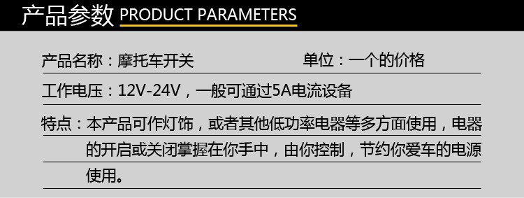 本网页所展示的有关【摩托车电动电瓶车改装双闪开关转向优先警告应急危险灯超车灯按钮_汽车灯具_广州洋雷实业有限公司】的信息/图片/参数等由全球零部件网的会员【广州洋雷实业有限公司】提供,由全球零部件网会员【广州洋雷实业有限公司】自行对信息/图片/参数等的真实性、准确性和合法性负责,本平台(本网站)仅提供展示服务,请谨慎交易,因交易而产生的法律关系及法律纠纷由您自行协商解决,本平台(本网站)对此不承担任何责任。您在本网页可以浏览【摩托车电动电瓶车改装双闪开关转向优先警告应急危险灯超车灯按钮_汽车灯具_广州洋雷实业有限公司】有关的信息/图片/价格等及提供【摩托车电动电瓶车改装双闪开关转向优先警告应急危险灯超车灯按钮_汽车灯具_广州洋雷实业有限公司】的商家公司简介、联系方式等信息。