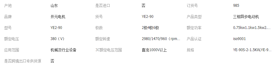 本网页所展示的有关【0.75kw1.1kw1.5kw2.2kw山东开元电机2极4极6极YE2三相异步电动机_直流电机_佛山市栋一机电有限公司】的信息/图片/参数等由全球零部件网的会员【佛山市栋一机电有限公司】提供,由全球零部件网会员【佛山市栋一机电有限公司】自行对信息/图片/参数等的真实性、准确性和合法性负责,本平台(本网站)仅提供展示服务,请谨慎交易,因交易而产生的法律关系及法律纠纷由您自行协商解决,本平台(本网站)对此不承担任何责任。您在本网页可以浏览【0.75kw1.1kw1.5kw2.2kw山东开元电机2极4极6极YE2三相异步电动机_直流电机_佛山市栋一机电有限公司】有关的信息/图片/价格等及提供【0.75kw1.1kw1.5kw2.2kw山东开元电机2极4极6极YE2三相异步电动机_直流电机_佛山市栋一机电有限公司】的商家公司简介、联系方式等信息。