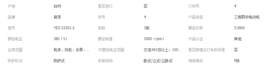 本网页所展示的有关【厂销 YE3-132S1-2 5.5KW 高效率三相异步电机 YX3 全铜马达 380V_交流电机_台州市新凌机电有限公司】的信息/图片/参数等由全球零部件网的会员【台州市新凌机电有限公司】提供,由全球零部件网会员【台州市新凌机电有限公司】自行对信息/图片/参数等的真实性、准确性和合法性负责,本平台(本网站)仅提供展示服务,请谨慎交易,因交易而产生的法律关系及法律纠纷由您自行协商解决,本平台(本网站)对此不承担任何责任。您在本网页可以浏览【厂销 YE3-132S1-2 5.5KW 高效率三相异步电机 YX3 全铜马达 380V_交流电机_台州市新凌机电有限公司】有关的信息/图片/价格等及提供【厂销 YE3-132S1-2 5.5KW 高效率三相异步电机 YX3 全铜马达 380V_交流电机_台州市新凌机电有限公司】的商家公司简介、联系方式等信息。