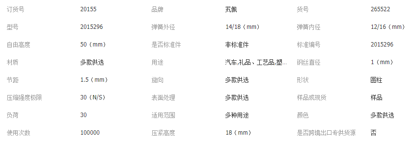 公司秉承“创新、求精、务实、高效”的企业精神;“质量为本,诚信为上”的经营理念。我们将以“先进的技术、优良的品质、合理的价格、专业的服务”满足您的需求。弹簧定制电话:13671565126 郭琼 欢迎您随时参观指导!
