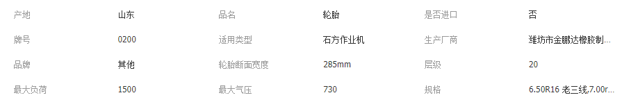 本网页所展示的有关【卡车轮胎 矿山轮胎 钢丝胎 650 700 825 900 10 1100 1200 -16 20_轮胎_潍坊市金鹏达橡胶制品有限公司】的信息/图片/参数等由全球零部件网的会员【潍坊市金鹏达橡胶制品有限公司】提供,由全球零部件网会员【潍坊市金鹏达橡胶制品有限公司】自行对信息/图片/参数等的真实性、准确性和合法性负责,本平台(本网站)仅提供展示服务,请谨慎交易,因交易而产生的法律关系及法律纠纷由您自行协商解决,本平台(本网站)对此不承担任何责任。您在本网页可以浏览【卡车轮胎 矿山轮胎 钢丝胎 650 700 825 900 10 1100 1200 -16 20_轮胎_潍坊市金鹏达橡胶制品有限公司】有关的信息/图片/价格等及提供【卡车轮胎 矿山轮胎 钢丝胎 650 700 825 900 10 1100 1200 -16 20_轮胎_潍坊市金鹏达橡胶制品有限公司】的商家公司简介、联系方式等信息。
