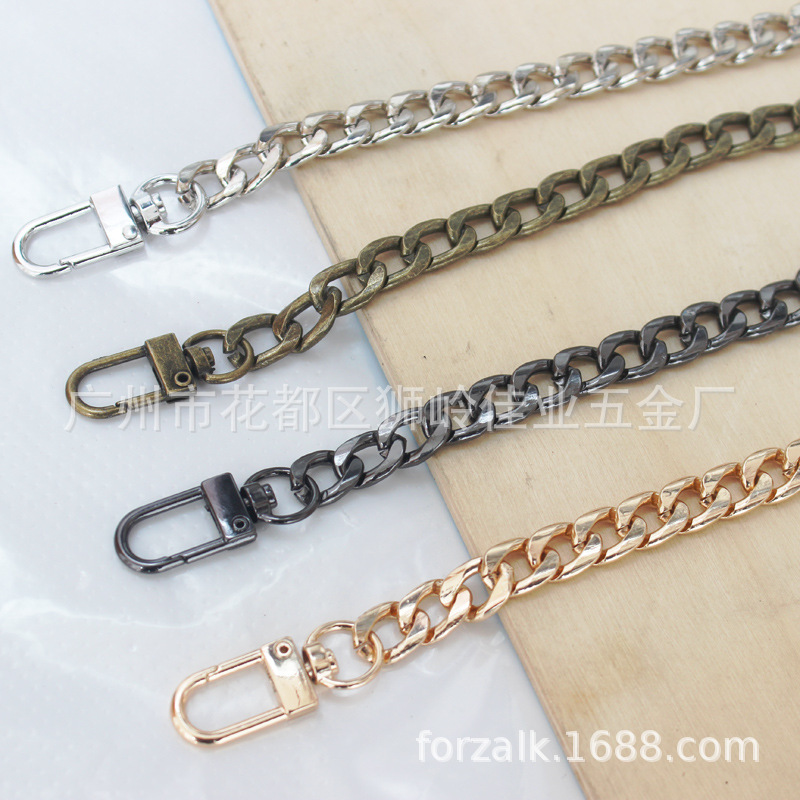 三、本店提供加工服务,你可以选好链条跟扣子及要剪的长度给客服,我们可以收加工费帮您加工成成品,如果有需要可以联系客服(加工需外发,发货时间会延后)。如果购买链条请看好算好长度,按米卖的是没加扣的。如果按条算的话都是一般都是两边加好扣子的。如果是手提一般为40-50cm,单肩一般为100cm,斜挎一般为110-120cm左右。以上只是推荐,因为个人身高及包包所到的位置不同,如果要准确的最好自己拿米尺量下哦。
