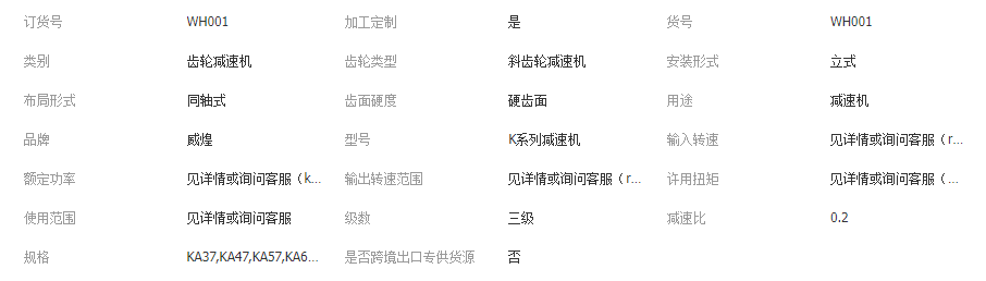 本网页所展示的有关【K系列螺旋锥直角斜齿轮减速机空心轴硬齿面卧式立式减速器_液压减速机_浙江威煌减速机有限公司】的信息/图片/参数等由全球零部件网的会员【浙江威煌减速机有限公司】提供,由全球零部件网会员【浙江威煌减速机有限公司】自行对信息/图片/参数等的真实性、准确性和合法性负责,本平台(本网站)仅提供展示服务,请谨慎交易,因交易而产生的法律关系及法律纠纷由您自行协商解决,本平台(本网站)对此不承担任何责任。您在本网页可以浏览【K系列螺旋锥直角斜齿轮减速机空心轴硬齿面卧式立式减速器_液压减速机_浙江威煌减速机有限公司】有关的信息/图片/价格等及提供【K系列螺旋锥直角斜齿轮减速机空心轴硬齿面卧式立式减速器_液压减速机_浙江威煌减速机有限公司】的商家公司简介、联系方式等信息。