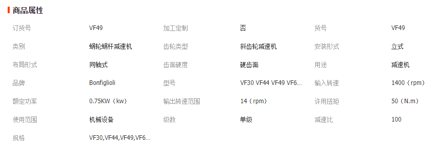 本网页所展示的有关【供应意大利邦飞利Bonfiglioli减速机VF系列 VF30 VF44 VF49减速机_液压减速机_东莞市鹰力传动科技有限公司】的信息/图片/参数等由全球零部件网的会员【东莞市鹰力传动科技有限公司】提供,由全球零部件网会员【东莞市鹰力传动科技有限公司】自行对信息/图片/参数等的真实性、准确性和合法性负责,本平台(本网站)仅提供展示服务,请谨慎交易,因交易而产生的法律关系及法律纠纷由您自行协商解决,本平台(本网站)对此不承担任何责任。您在本网页可以浏览【供应意大利邦飞利Bonfiglioli减速机VF系列 VF30 VF44 VF49减速机_液压减速机_东莞市鹰力传动科技有限公司】有关的信息/图片/价格等及提供【供应意大利邦飞利Bonfiglioli减速机VF系列 VF30 VF44 VF49减速机_液压减速机_东莞市鹰力传动科技有限公司】的商家公司简介、联系方式等信息。