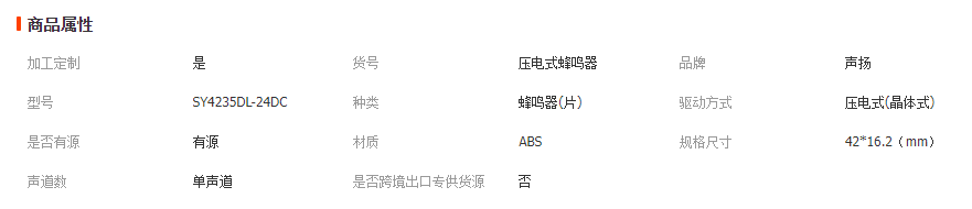 本网页所展示的有关【24V带耳压电式蜂鸣器连续声报警器汽车倒车讯响器有源带线警报器_蜂鸣器_深圳市声扬电子有限公司】的信息/图片/参数等由全球零部件网的会员【深圳市声扬电子有限公司】提供,由全球零部件网会员【深圳市声扬电子有限公司】自行对信息/图片/参数等的真实性、准确性和合法性负责,本平台(本网站)仅提供展示服务,请谨慎交易,因交易而产生的法律关系及法律纠纷由您自行协商解决,本平台(本网站)对此不承担任何责任。您在本网页可以浏览【24V带耳压电式蜂鸣器连续声报警器汽车倒车讯响器有源带线警报器_蜂鸣器_深圳市声扬电子有限公司】有关的信息/图片/价格等及提供【24V带耳压电式蜂鸣器连续声报警器汽车倒车讯响器有源带线警报器_蜂鸣器_深圳市声扬电子有限公司】的商家公司简介、联系方式等信息。