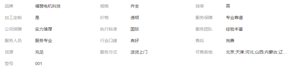 本网页所展示的有关【SF-90感应伺服电机|伺服主轴电机|异步 厂家质保_交流电机_上海福赞电机科技有限公司】的信息/图片/参数等由全球零部件网的会员【上海福赞电机科技有限公司】提供,由全球零部件网会员【上海福赞电机科技有限公司】自行对信息/图片/参数等的真实性、准确性和合法性负责,本平台(本网站)仅提供展示服务,请谨慎交易,因交易而产生的法律关系及法律纠纷由您自行协商解决,本平台(本网站)对此不承担任何责任。您在本网页可以浏览【SF-90感应伺服电机|伺服主轴电机|异步 厂家质保_交流电机_上海福赞电机科技有限公司】有关的信息/图片/价格等及提供【SF-90感应伺服电机|伺服主轴电机|异步 厂家质保_交流电机_上海福赞电机科技有限公司】的商家公司简介、联系方式等信息。