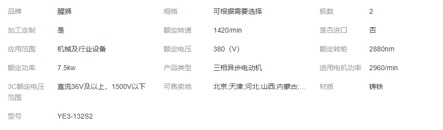 本网页所展示的有关【供应YE3-132S2-7.5KW 415V/50HZ/60HZ 三相纯铜异步电动机_交流电机_广东醒狮电机有限公司】的信息/图片/参数等由全球零部件网的会员【广东醒狮电机有限公司】提供,由全球零部件网会员【广东醒狮电机有限公司】自行对信息/图片/参数等的真实性、准确性和合法性负责,本平台(本网站)仅提供展示服务,请谨慎交易,因交易而产生的法律关系及法律纠纷由您自行协商解决,本平台(本网站)对此不承担任何责任。您在本网页可以浏览【供应YE3-132S2-7.5KW 415V/50HZ/60HZ 三相纯铜异步电动机_交流电机_广东醒狮电机有限公司】有关的信息/图片/价格等及提供【供应YE3-132S2-7.5KW 415V/50HZ/60HZ 三相纯铜异步电动机_交流电机_广东醒狮电机有限公司】的商家公司简介、联系方式等信息。