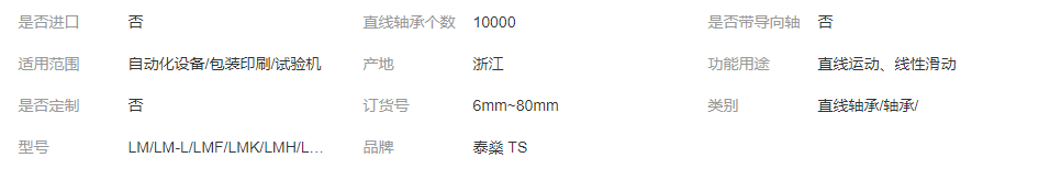 本网页所展示的有关【泰燊 直线轴承 标准型轴承 SC箱式轴承 带法兰 开口 加长 无卡顿_直线运动轴承_浙江泰燊传动科技有限公司】的信息/图片/参数等由全球零部件网的会员【浙江泰燊传动科技有限公司】提供,由全球零部件网会员【浙江泰燊传动科技有限公司】自行对信息/图片/参数等的真实性、准确性和合法性负责,本平台(本网站)仅提供展示服务,请谨慎交易,因交易而产生的法律关系及法律纠纷由您自行协商解决,本平台(本网站)对此不承担任何责任。您在本网页可以浏览【泰燊 直线轴承 标准型轴承 SC箱式轴承 带法兰 开口 加长 无卡顿_直线运动轴承_浙江泰燊传动科技有限公司】有关的信息/图片/价格等及提供【泰燊 直线轴承 标准型轴承 SC箱式轴承 带法兰 开口 加长 无卡顿_直线运动轴承_浙江泰燊传动科技有限公司】的商家公司简介、联系方式等信息。