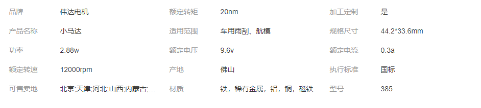 本网页所展示的有关【车用雨刮微电机充气泵有刷静音小型马达12v碳刷直流减速微型电机_直流电机_佛山市伟达微型电机有限公司】的信息/图片/参数等由全球零部件网的会员【佛山市伟达微型电机有限公司】提供,由全球零部件网会员【佛山市伟达微型电机有限公司】自行对信息/图片/参数等的真实性、准确性和合法性负责,本平台(本网站)仅提供展示服务,请谨慎交易,因交易而产生的法律关系及法律纠纷由您自行协商解决,本平台(本网站)对此不承担任何责任。您在本网页可以浏览【车用雨刮微电机充气泵有刷静音小型马达12v碳刷直流减速微型电机_直流电机_佛山市伟达微型电机有限公司】有关的信息/图片/价格等及提供【车用雨刮微电机充气泵有刷静音小型马达12v碳刷直流减速微型电机_直流电机_佛山市伟达微型电机有限公司】的商家公司简介、联系方式等信息。