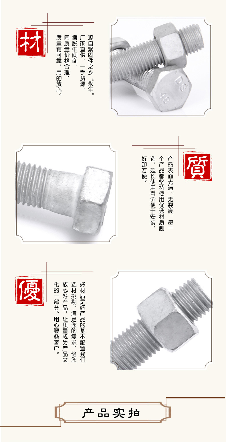本网页所展示的有关【厂家供应 热镀锌螺栓螺丝热渗锌螺栓高强度4.8级热镀锌外六角螺丝_螺栓_河北精拓轴承科技有限公司】的信息/图片/参数等由全球零部件网的会员【河北精拓轴承科技有限公司】提供,由全球零部件网会员【河北精拓轴承科技有限公司】自行对信息/图片/参数等的真实性、准确性和合法性负责,本平台(本网站)仅提供展示服务,请谨慎交易,因交易而产生的法律关系及法律纠纷由您自行协商解决,本平台(本网站)对此不承担任何责任。您在本网页可以浏览【厂家供应 热镀锌螺栓螺丝热渗锌螺栓高强度4.8级热镀锌外六角螺丝_螺栓_河北精拓轴承科技有限公司】有关的信息/图片/价格等及提供【厂家供应 热镀锌螺栓螺丝热渗锌螺栓高强度4.8级热镀锌外六角螺丝_螺栓_河北精拓轴承科技有限公司】的商家公司简介、联系方式等信息。