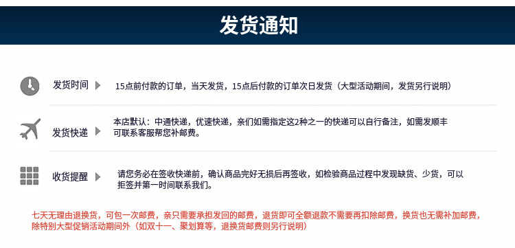 发货期限自买家付款之日起 7 天内发货