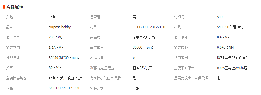| SP-054000-18 | 540有刷电机-黑色 | 540车用可换碳刷马达13T 3-Slot RPM:34000 IO:4.4A ¢3.175*12mm 扁位0.4mm深(16AWG蓝黄线配子弹公头)RoHS |