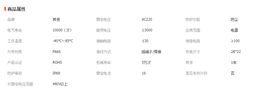 1.额定工作电压、电流Rating 3A/6A/15A 250V
