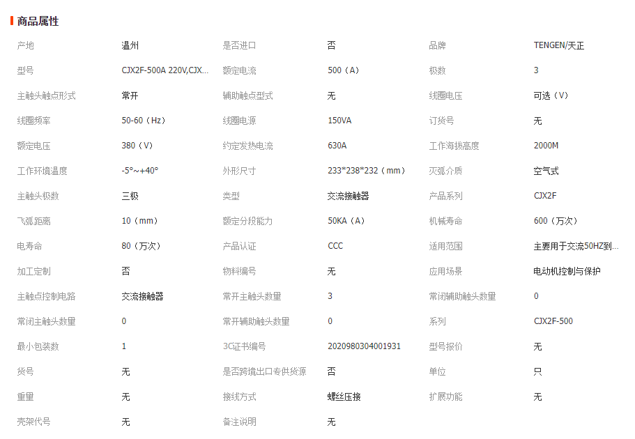 本网页所展示的有关【TENGEN天正 CJX2F-500A交流接触器 CDC6-500 NC2-500 220V 380V_接触器_河南西蒙电气有限公司】的信息/图片/参数等由全球零部件网的会员【河南西蒙电气有限公司】提供,由全球零部件网会员【河南西蒙电气有限公司】自行对信息/图片/参数等的真实性、准确性和合法性负责,本平台(本网站)仅提供展示服务,请谨慎交易,因交易而产生的法律关系及法律纠纷由您自行协商解决,本平台(本网站)对此不承担任何责任。您在本网页可以浏览【TENGEN天正 CJX2F-500A交流接触器 CDC6-500 NC2-500 220V 380V_接触器_河南西蒙电气有限公司】有关的信息/图片/价格等及提供【TENGEN天正 CJX2F-500A交流接触器 CDC6-500 NC2-500 220V 380V_接触器_河南西蒙电气有限公司】的商家公司简介、联系方式等信息。