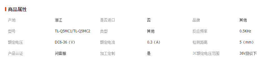 TL-Q5MC1常开/TL-Q5MC2常闭 NPN直流三线DC6-36V电感式接近开关