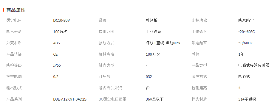 本网页所展示的有关【电感式接近开关D3E-A12KNT-04D2S三线金属PNP传感器感应接近开关_电源开关及按钮_温州杜热柏电气科技有限公司】的信息/图片/参数等由全球零部件网的会员【温州杜热柏电气科技有限公司】提供,由全球零部件网会员【温州杜热柏电气科技有限公司】自行对信息/图片/参数等的真实性、准确性和合法性负责,本平台(本网站)仅提供展示服务,请谨慎交易,因交易而产生的法律关系及法律纠纷由您自行协商解决,本平台(本网站)对此不承担任何责任。您在本网页可以浏览【电感式接近开关D3E-A12KNT-04D2S三线金属PNP传感器感应接近开关_电源开关及按钮_温州杜热柏电气科技有限公司】有关的信息/图片/价格等及提供【电感式接近开关D3E-A12KNT-04D2S三线金属PNP传感器感应接近开关_电源开关及按钮_温州杜热柏电气科技有限公司】的商家公司简介、联系方式等信息。