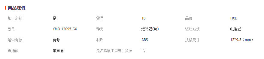 本网页所展示的有关【厂家直销电磁式蜂鸣器 YMD-12095-GX线长55毫米有源引线蜂鸣器_蜂鸣器_兴化市华兴机电有限公司】的信息/图片/参数等由全球零部件网的会员【兴化市华兴机电有限公司】提供,由全球零部件网会员【兴化市华兴机电有限公司】自行对信息/图片/参数等的真实性、准确性和合法性负责,本平台(本网站)仅提供展示服务,请谨慎交易,因交易而产生的法律关系及法律纠纷由您自行协商解决,本平台(本网站)对此不承担任何责任。您在本网页可以浏览【厂家直销电磁式蜂鸣器 YMD-12095-GX线长55毫米有源引线蜂鸣器_蜂鸣器_兴化市华兴机电有限公司】有关的信息/图片/价格等及提供【厂家直销电磁式蜂鸣器 YMD-12095-GX线长55毫米有源引线蜂鸣器_蜂鸣器_兴化市华兴机电有限公司】的商家公司简介、联系方式等信息。