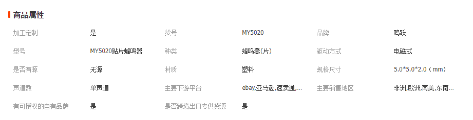 本网页所展示的有关【厂家直销5*5mm贴片蜂鸣器 ETC 微型 电磁无源 智能穿戴专用 SMD_蜂鸣器_东莞市鸣跃电子科技有限公司】的信息/图片/参数等由全球零部件网的会员【东莞市鸣跃电子科技有限公司】提供,由全球零部件网会员【东莞市鸣跃电子科技有限公司】自行对信息/图片/参数等的真实性、准确性和合法性负责,本平台(本网站)仅提供展示服务,请谨慎交易,因交易而产生的法律关系及法律纠纷由您自行协商解决,本平台(本网站)对此不承担任何责任。您在本网页可以浏览【厂家直销5*5mm贴片蜂鸣器 ETC 微型 电磁无源 智能穿戴专用 SMD_蜂鸣器_东莞市鸣跃电子科技有限公司】有关的信息/图片/价格等及提供【厂家直销5*5mm贴片蜂鸣器 ETC 微型 电磁无源 智能穿戴专用 SMD_蜂鸣器_东莞市鸣跃电子科技有限公司】的商家公司简介、联系方式等信息。
