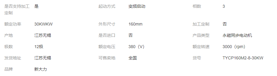本网页所展示的有关【新大力电机TYCP160M2-8-30KW永磁变频电机系列节能电机_驱动电机_无锡新大力电机有限公司】的信息/图片/参数等由全球零部件网的会员【无锡新大力电机有限公司】提供,由全球零部件网会员【无锡新大力电机有限公司】自行对信息/图片/参数等的真实性、准确性和合法性负责,本平台(本网站)仅提供展示服务,请谨慎交易,因交易而产生的法律关系及法律纠纷由您自行协商解决,本平台(本网站)对此不承担任何责任。您在本网页可以浏览【新大力电机TYCP160M2-8-30KW永磁变频电机系列节能电机_驱动电机_无锡新大力电机有限公司】有关的信息/图片/价格等及提供【新大力电机TYCP160M2-8-30KW永磁变频电机系列节能电机_驱动电机_无锡新大力电机有限公司】的商家公司简介、联系方式等信息。