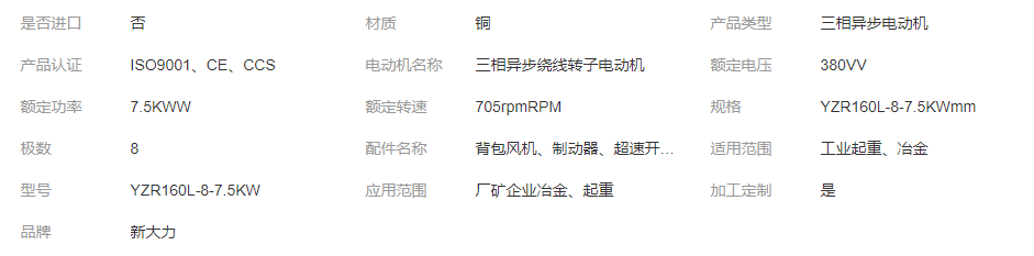 本网页所展示的有关【新大力电机YZR160L-8-7.5KW绕线转子起重及冶金用电动机_驱动电机_无锡新大力电机有限公司】的信息/图片/参数等由全球零部件网的会员【无锡新大力电机有限公司】提供,由全球零部件网会员【无锡新大力电机有限公司】自行对信息/图片/参数等的真实性、准确性和合法性负责,本平台(本网站)仅提供展示服务,请谨慎交易,因交易而产生的法律关系及法律纠纷由您自行协商解决,本平台(本网站)对此不承担任何责任。您在本网页可以浏览【新大力电机YZR160L-8-7.5KW绕线转子起重及冶金用电动机_驱动电机_无锡新大力电机有限公司】有关的信息/图片/价格等及提供【新大力电机YZR160L-8-7.5KW绕线转子起重及冶金用电动机_驱动电机_无锡新大力电机有限公司】的商家公司简介、联系方式等信息。