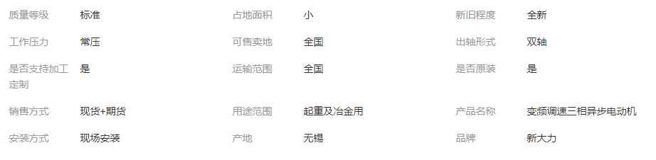 本网页所展示的有关【新大力 三相异步电动机 YZP132M2-6-4.0KW 使用便捷 坚固耐用_驱动电机_无锡新大力电机有限公司】的信息/图片/参数等由全球零部件网的会员【无锡新大力电机有限公司】提供,由全球零部件网会员【无锡新大力电机有限公司】自行对信息/图片/参数等的真实性、准确性和合法性负责,本平台(本网站)仅提供展示服务,请谨慎交易,因交易而产生的法律关系及法律纠纷由您自行协商解决,本平台(本网站)对此不承担任何责任。您在本网页可以浏览【新大力 三相异步电动机 YZP132M2-6-4.0KW 使用便捷 坚固耐用_驱动电机_无锡新大力电机有限公司】有关的信息/图片/价格等及提供【新大力 三相异步电动机 YZP132M2-6-4.0KW 使用便捷 坚固耐用_驱动电机_无锡新大力电机有限公司】的商家公司简介、联系方式等信息。