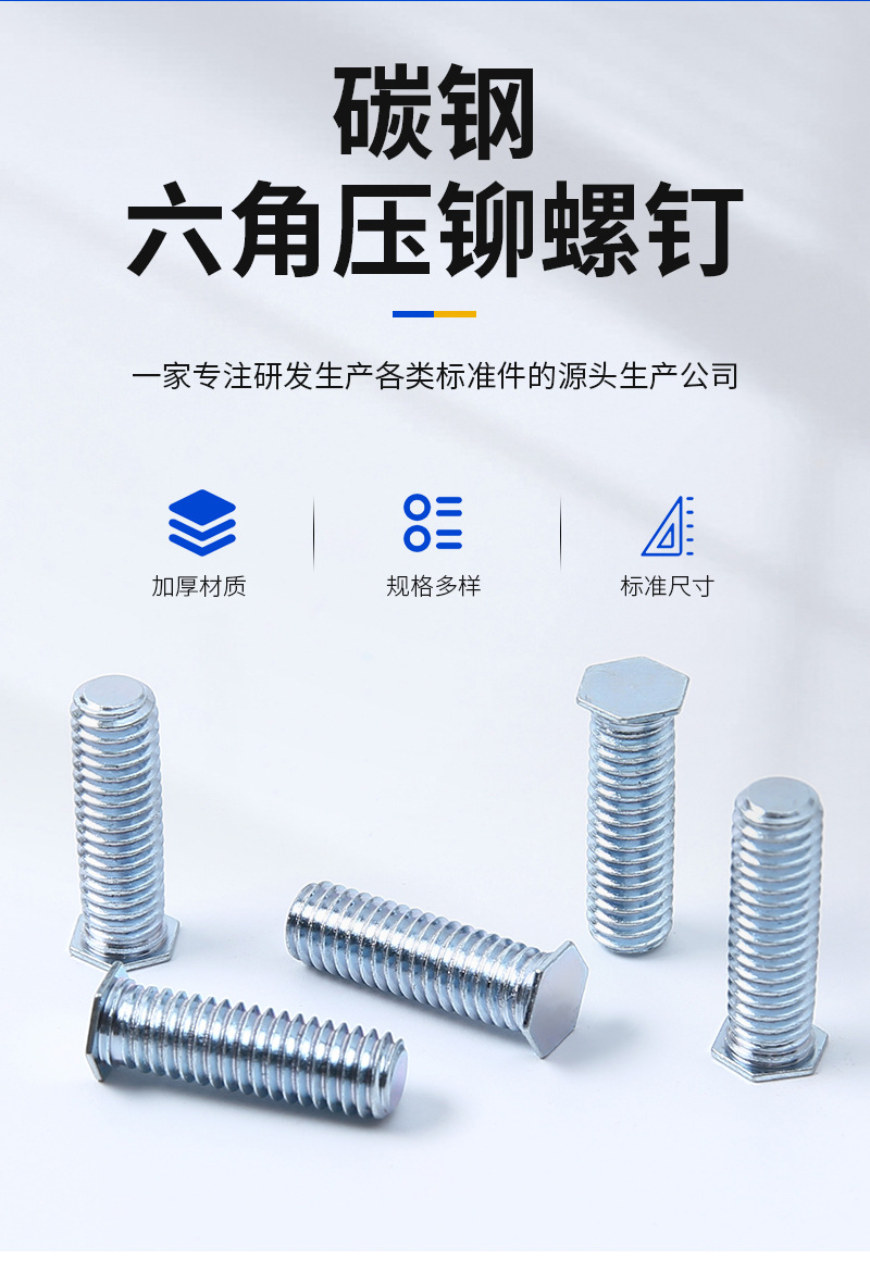 本网页所展示的有关【碳钢六角压铆螺钉 压铆螺钉 钣金压板螺丝机柜螺丝_螺钉_温州昊冉标准件有限公司】的信息/图片/参数等由全球零部件网的会员【温州昊冉标准件有限公司】提供,由全球零部件网会员【温州昊冉标准件有限公司】自行对信息/图片/参数等的真实性、准确性和合法性负责,本平台(本网站)仅提供展示服务,请谨慎交易,因交易而产生的法律关系及法律纠纷由您自行协商解决,本平台(本网站)对此不承担任何责任。您在本网页可以浏览【碳钢六角压铆螺钉 压铆螺钉 钣金压板螺丝机柜螺丝_螺钉_温州昊冉标准件有限公司】有关的信息/图片/价格等及提供【碳钢六角压铆螺钉 压铆螺钉 钣金压板螺丝机柜螺丝_螺钉_温州昊冉标准件有限公司】的商家公司简介、联系方式等信息。