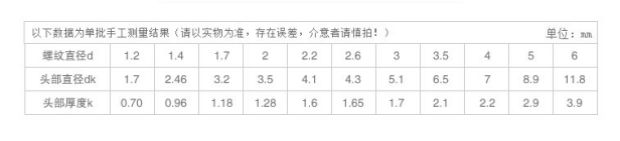 | 规 格 标 号 | 长 度不含头) | 头 径 |
