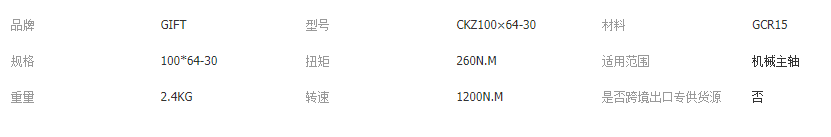 CKZ型为有轴承支撑的楔块式超越离合器。适用于极限转速为600~1500r/min,常用公称转矩为:180~8000N · m。常用于包装机、起重运输机械、冶金机械、矿山机械、石油机械、化工机械、水泥机械、电站等,亦称逆止器。此型号主要用于防止逆转及双动力源的慢速启动装置。 |