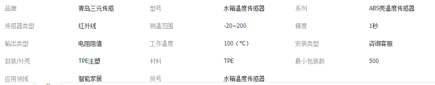 本网页所展示的有关【水箱温度传感器 带挡片开水器温度传感器 子弹头温度传感器_传感器_青岛三元传感技术有限公司】的信息/图片/参数等由全球零部件网的会员【青岛三元传感技术有限公司】提供,由全球零部件网会员【青岛三元传感技术有限公司】自行对信息/图片/参数等的真实性、准确性和合法性负责,本平台(本网站)仅提供展示服务,请谨慎交易,因交易而产生的法律关系及法律纠纷由您自行协商解决,本平台(本网站)对此不承担任何责任。您在本网页可以浏览【水箱温度传感器 带挡片开水器温度传感器 子弹头温度传感器_传感器_青岛三元传感技术有限公司】有关的信息/图片/价格等及提供【水箱温度传感器 带挡片开水器温度传感器 子弹头温度传感器_传感器_青岛三元传感技术有限公司】的商家公司简介、联系方式等信息。