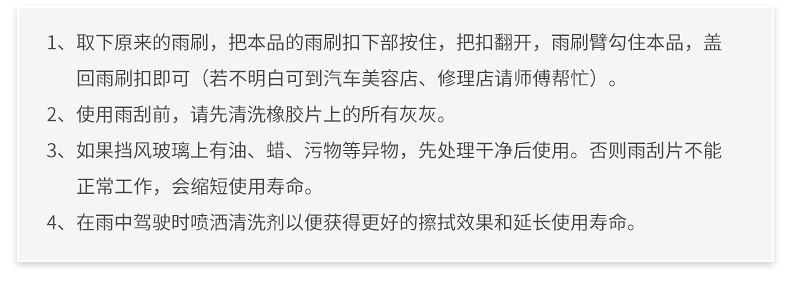本公司专业生产各种型号雨刷、雨刮器,汽车雨刮臂片、通用型无骨雨刷器、通用型有骨雨刷器、专车专用雨刷器等。