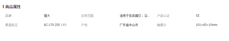 特点:1、此开关是一款隔离触摸感应开关,适用于有介质(如玻璃、亚克力、塑料、陶瓷等)灯体的各类灯具上,在隔离保护的情况下不用接触金属部件隔着玻璃就可以感应触发开关工作,实现触摸功能,安全性能高。开关使用无机械磨损,寿命长,开关安装好后镜子正面看不到开关配件,只是看到背光透出的触摸标志,美观又大方,适用于制作各种高档产品。