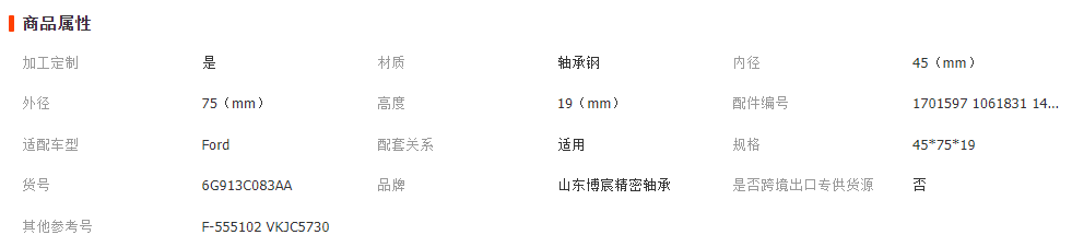 本网页所展示的有关【适用于福特汽车传动轴1701597 Ford前桥驱动轴轴承 6G913C083AA_轴承_山东博宸精密轴承有限公司】的信息/图片/参数等由全球零部件网的会员【山东博宸精密轴承有限公司】提供,由全球零部件网会员【山东博宸精密轴承有限公司】自行对信息/图片/参数等的真实性、准确性和合法性负责,本平台(本网站)仅提供展示服务,请谨慎交易,因交易而产生的法律关系及法律纠纷由您自行协商解决,本平台(本网站)对此不承担任何责任。您在本网页可以浏览【适用于福特汽车传动轴1701597 Ford前桥驱动轴轴承 6G913C083AA_轴承_山东博宸精密轴承有限公司】有关的信息/图片/价格等及提供【适用于福特汽车传动轴1701597 Ford前桥驱动轴轴承 6G913C083AA_轴承_山东博宸精密轴承有限公司】的商家公司简介、联系方式等信息。