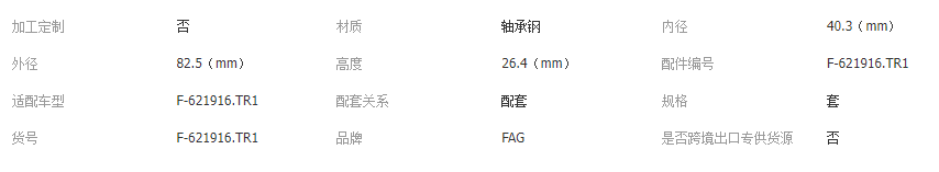 本网页所展示的有关【FAG F-621916.TR1汽车差速器轴承 变速箱轴承F-621917.TR1_轴承_上海米菲勒传动科技有限公司】的信息/图片/参数等由全球零部件网的会员【上海米菲勒传动科技有限公司】提供,由全球零部件网会员【上海米菲勒传动科技有限公司】自行对信息/图片/参数等的真实性、准确性和合法性负责,本平台(本网站)仅提供展示服务,请谨慎交易,因交易而产生的法律关系及法律纠纷由您自行协商解决,本平台(本网站)对此不承担任何责任。您在本网页可以浏览【FAG F-621916.TR1汽车差速器轴承 变速箱轴承F-621917.TR1_轴承_上海米菲勒传动科技有限公司】有关的信息/图片/价格等及提供【FAG F-621916.TR1汽车差速器轴承 变速箱轴承F-621917.TR1_轴承_上海米菲勒传动科技有限公司】的商家公司简介、联系方式等信息。