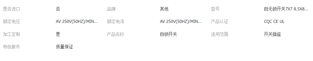 立即发布求购意向本网页所展示的有关【自锁开关7 7 8 8 5.8 5.8 自锁开关 微动开关 按键开关_电子/开关/脉冲变压器_乐清市蒲岐兴海电子厂】的信息/图片/参数等由全球零部件网的会员【乐清市蒲岐兴海电子厂】提供,由全球零部件网会员【乐清市蒲岐兴海电子厂】自行对信息/图片/参数等的真实性、准确性和合法性负责,本平台(本网站)仅提供展示服务,请谨慎交易,因交易而产生的法律关系及法律纠纷由您自行协商解决,本平台(本网站)对此不承担任何责任。您在本网页可以浏览【自锁开关7 7 8 8 5.8 5.8 自锁开关 微动开关 按键开关_电子/开关/脉冲变压器_乐清市蒲岐兴海电子厂】有关的信息/图片/价格等及提供【自锁开关7 7 8 8 5.8 5.8 自锁开关 微动开关 按键开关_电子/开关/脉冲变压器_乐清市蒲岐兴海电子厂】的商家公司简介、联系方式等信息。