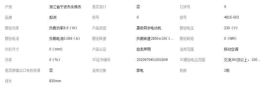 本网页所展示的有关【我司长期供应4815-003罩极电机,广泛应用于移动空调等家用电器_电机_余姚市梨洲机电制造有限公司】的信息/图片/参数等由全球零部件网的会员【余姚市梨洲机电制造有限公司】提供,由全球零部件网会员【余姚市梨洲机电制造有限公司】自行对信息/图片/参数等的真实性、准确性和合法性负责,本平台(本网站)仅提供展示服务,请谨慎交易,因交易而产生的法律关系及法律纠纷由您自行协商解决,本平台(本网站)对此不承担任何责任。您在本网页可以浏览【我司长期供应4815-003罩极电机,广泛应用于移动空调等家用电器_电机_余姚市梨洲机电制造有限公司】有关的信息/图片/价格等及提供【我司长期供应4815-003罩极电机,广泛应用于移动空调等家用电器_电机_余姚市梨洲机电制造有限公司】的商家公司简介、联系方式等信息。