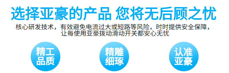 本网页所展示的有关【拨动滑动开关 推动拨动滑动触通开关 LED户外灯拨动开关实力工厂_电源开关及按钮_东莞市亚豪电子有限公司】的信息/图片/参数等由全球零部件网的会员【东莞市亚豪电子有限公司】提供,由全球零部件网会员【东莞市亚豪电子有限公司】自行对信息/图片/参数等的真实性、准确性和合法性负责,本平台(本网站)仅提供展示服务,请谨慎交易,因交易而产生的法律关系及法律纠纷由您自行协商解决,本平台(本网站)对此不承担任何责任。您在本网页可以浏览【拨动滑动开关 推动拨动滑动触通开关 LED户外灯拨动开关实力工厂_电源开关及按钮_东莞市亚豪电子有限公司】有关的信息/图片/价格等及提供【拨动滑动开关 推动拨动滑动触通开关 LED户外灯拨动开关实力工厂_电源开关及按钮_东莞市亚豪电子有限公司】的商家公司简介、联系方式等信息。