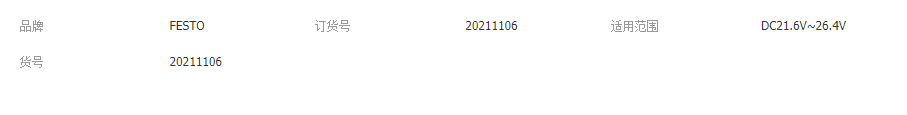 本网页所展示的有关【FESTO费斯托原装电磁阀MHE2-MS1H-3/2G-M7-K直接出线DC21.6V~26.4_电磁阀_深圳市品德尚自动化科技有限公司】的信息/图片/参数等由全球零部件网的会员【深圳市品德尚自动化科技有限公司】提供,由全球零部件网会员【深圳市品德尚自动化科技有限公司】自行对信息/图片/参数等的真实性、准确性和合法性负责,本平台(本网站)仅提供展示服务,请谨慎交易,因交易而产生的法律关系及法律纠纷由您自行协商解决,本平台(本网站)对此不承担任何责任。您在本网页可以浏览【FESTO费斯托原装电磁阀MHE2-MS1H-3/2G-M7-K直接出线DC21.6V~26.4_电磁阀_深圳市品德尚自动化科技有限公司】有关的信息/图片/价格等及提供【FESTO费斯托原装电磁阀MHE2-MS1H-3/2G-M7-K直接出线DC21.6V~26.4_电磁阀_深圳市品德尚自动化科技有限公司】的商家公司简介、联系方式等信息。