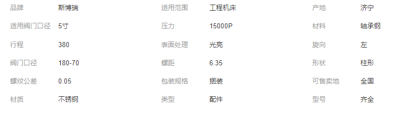 本网页所展示的有关【斯博瑞滚珠丝杠价格防锈防腐蚀机械工业机床附件_通用五金配件_济宁斯博瑞机械配件有限公司】的信息/图片/参数等由全球零部件网的会员【济宁斯博瑞机械配件有限公司】提供,由全球零部件网会员【济宁斯博瑞机械配件有限公司】自行对信息/图片/参数等的真实性、准确性和合法性负责,本平台(本网站)仅提供展示服务,请谨慎交易,因交易而产生的法律关系及法律纠纷由您自行协商解决,本平台(本网站)对此不承担任何责任。您在本网页可以浏览【斯博瑞滚珠丝杠价格防锈防腐蚀机械工业机床附件_通用五金配件_济宁斯博瑞机械配件有限公司】有关的信息/图片/价格等及提供【斯博瑞滚珠丝杠价格防锈防腐蚀机械工业机床附件_通用五金配件_济宁斯博瑞机械配件有限公司】的商家公司简介、联系方式等信息。