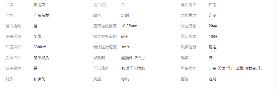 本网页所展示的有关【希达克 精密 连杆传动环形导轨 产品性价比高 多种规格可选_导轨_东莞市希达克精密机械科技有限公司】的信息/图片/参数等由全球零部件网的会员【东莞市希达克精密机械科技有限公司】提供,由全球零部件网会员【东莞市希达克精密机械科技有限公司】自行对信息/图片/参数等的真实性、准确性和合法性负责,本平台(本网站)仅提供展示服务,请谨慎交易,因交易而产生的法律关系及法律纠纷由您自行协商解决,本平台(本网站)对此不承担任何责任。您在本网页可以浏览【希达克 精密 连杆传动环形导轨 产品性价比高 多种规格可选_导轨_东莞市希达克精密机械科技有限公司】有关的信息/图片/价格等及提供【希达克 精密 连杆传动环形导轨 产品性价比高 多种规格可选_导轨_东莞市希达克精密机械科技有限公司】的商家公司简介、联系方式等信息。