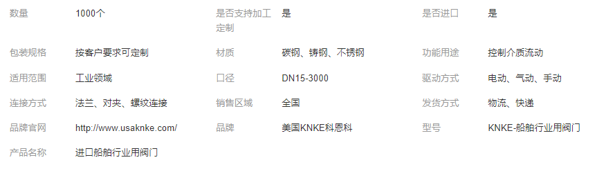 本网页所展示的有关【进口船舶行业用阀门 电动气动手动 碳钢不锈钢铸钢 美国KNKE科恩科_电磁阀_科恩科工业(深圳)有限公司】的信息/图片/参数等由全球零部件网的会员【科恩科工业(深圳)有限公司】提供,由全球零部件网会员【科恩科工业(深圳)有限公司】自行对信息/图片/参数等的真实性、准确性和合法性负责,本平台(本网站)仅提供展示服务,请谨慎交易,因交易而产生的法律关系及法律纠纷由您自行协商解决,本平台(本网站)对此不承担任何责任。您在本网页可以浏览【进口船舶行业用阀门 电动气动手动 碳钢不锈钢铸钢 美国KNKE科恩科_电磁阀_科恩科工业(深圳)有限公司】有关的信息/图片/价格等及提供【进口船舶行业用阀门 电动气动手动 碳钢不锈钢铸钢 美国KNKE科恩科_电磁阀_科恩科工业(深圳)有限公司】的商家公司简介、联系方式等信息。