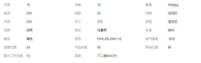 本网页所展示的有关【不二越NACHI柱塞泵油泵PVS-1B/0B/2B-45N1/35N1/22N3/16N2-U/Z-12_机油泵_苏州越森机电有限公司】的信息/图片/参数等由全球零部件网的会员【苏州越森机电有限公司】提供,由全球零部件网会员【苏州越森机电有限公司】自行对信息/图片/参数等的真实性、准确性和合法性负责,本平台(本网站)仅提供展示服务,请谨慎交易,因交易而产生的法律关系及法律纠纷由您自行协商解决,本平台(本网站)对此不承担任何责任。您在本网页可以浏览【不二越NACHI柱塞泵油泵PVS-1B/0B/2B-45N1/35N1/22N3/16N2-U/Z-12_机油泵_苏州越森机电有限公司】有关的信息/图片/价格等及提供【不二越NACHI柱塞泵油泵PVS-1B/0B/2B-45N1/35N1/22N3/16N2-U/Z-12_机油泵_苏州越森机电有限公司】的商家公司简介、联系方式等信息。
