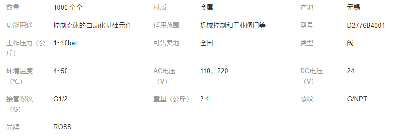 本网页所展示的有关【批发美国原装ROSS阀D2776B4001W/Y/Z两位四通阀 G1/2 24VDC_电磁阀_阿斯克机械(无锡)有限公司】的信息/图片/参数等由全球零部件网的会员【阿斯克机械(无锡)有限公司】提供,由全球零部件网会员【阿斯克机械(无锡)有限公司】自行对信息/图片/参数等的真实性、准确性和合法性负责,本平台(本网站)仅提供展示服务,请谨慎交易,因交易而产生的法律关系及法律纠纷由您自行协商解决,本平台(本网站)对此不承担任何责任。您在本网页可以浏览【批发美国原装ROSS阀D2776B4001W/Y/Z两位四通阀 G1/2 24VDC_电磁阀_阿斯克机械(无锡)有限公司】有关的信息/图片/价格等及提供【批发美国原装ROSS阀D2776B4001W/Y/Z两位四通阀 G1/2 24VDC_电磁阀_阿斯克机械(无锡)有限公司】的商家公司简介、联系方式等信息。