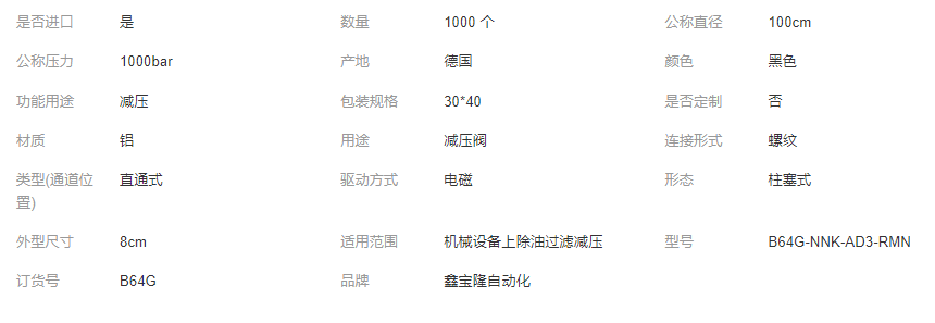 本网页所展示的有关【诺冠调压阀B68G-NNK-AR3-RLN过滤器减压阀norgren电磁阀_电磁阀_深圳市鑫宝隆自动化科技有限公司】的信息/图片/参数等由全球零部件网的会员【深圳市鑫宝隆自动化科技有限公司】提供,由全球零部件网会员【深圳市鑫宝隆自动化科技有限公司】自行对信息/图片/参数等的真实性、准确性和合法性负责,本平台(本网站)仅提供展示服务,请谨慎交易,因交易而产生的法律关系及法律纠纷由您自行协商解决,本平台(本网站)对此不承担任何责任。您在本网页可以浏览【诺冠调压阀B68G-NNK-AR3-RLN过滤器减压阀norgren电磁阀_电磁阀_深圳市鑫宝隆自动化科技有限公司】有关的信息/图片/价格等及提供【诺冠调压阀B68G-NNK-AR3-RLN过滤器减压阀norgren电磁阀_电磁阀_深圳市鑫宝隆自动化科技有限公司】的商家公司简介、联系方式等信息。