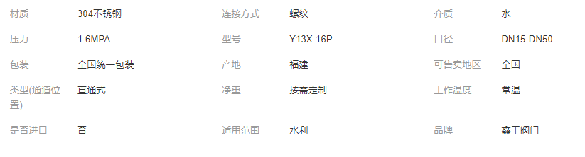 本网页所展示的有关【304不锈钢减压阀恒压阀调压阀丝口扣接水管4分6分1寸可调式稳压阀_电磁阀_福建鑫工阀门有限公司】的信息/图片/参数等由全球零部件网的会员【福建鑫工阀门有限公司】提供,由全球零部件网会员【福建鑫工阀门有限公司】自行对信息/图片/参数等的真实性、准确性和合法性负责,本平台(本网站)仅提供展示服务,请谨慎交易,因交易而产生的法律关系及法律纠纷由您自行协商解决,本平台(本网站)对此不承担任何责任。您在本网页可以浏览【304不锈钢减压阀恒压阀调压阀丝口扣接水管4分6分1寸可调式稳压阀_电磁阀_福建鑫工阀门有限公司】有关的信息/图片/价格等及提供【304不锈钢减压阀恒压阀调压阀丝口扣接水管4分6分1寸可调式稳压阀_电磁阀_福建鑫工阀门有限公司】的商家公司简介、联系方式等信息。