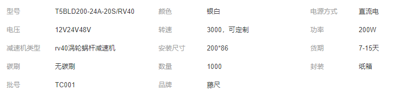 本网页所展示的有关【5系列直流无刷电机200W配rv40涡轮蜗杆减速机_直流电机_佛山市藤尺机电设备有限公司】的信息/图片/参数等由全球零部件网的会员【佛山市藤尺机电设备有限公司】提供,由全球零部件网会员【佛山市藤尺机电设备有限公司】自行对信息/图片/参数等的真实性、准确性和合法性负责,本平台(本网站)仅提供展示服务,请谨慎交易,因交易而产生的法律关系及法律纠纷由您自行协商解决,本平台(本网站)对此不承担任何责任。您在本网页可以浏览【5系列直流无刷电机200W配rv40涡轮蜗杆减速机_直流电机_佛山市藤尺机电设备有限公司】有关的信息/图片/价格等及提供【5系列直流无刷电机200W配rv40涡轮蜗杆减速机_直流电机_佛山市藤尺机电设备有限公司】的商家公司简介、联系方式等信息。