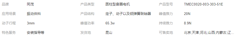 本网页所展示的有关【同茂永磁同步直流音圈电机振动供料专用音圈马达_直流电机_泰州同茂智能装备有限公司】的信息/图片/参数等由全球零部件网的会员【泰州同茂智能装备有限公司】提供,由全球零部件网会员【泰州同茂智能装备有限公司】自行对信息/图片/参数等的真实性、准确性和合法性负责,本平台(本网站)仅提供展示服务,请谨慎交易,因交易而产生的法律关系及法律纠纷由您自行协商解决,本平台(本网站)对此不承担任何责任。您在本网页可以浏览【同茂永磁同步直流音圈电机振动供料专用音圈马达_直流电机_泰州同茂智能装备有限公司】有关的信息/图片/价格等及提供【同茂永磁同步直流音圈电机振动供料专用音圈马达_直流电机_泰州同茂智能装备有限公司】的商家公司简介、联系方式等信息。
