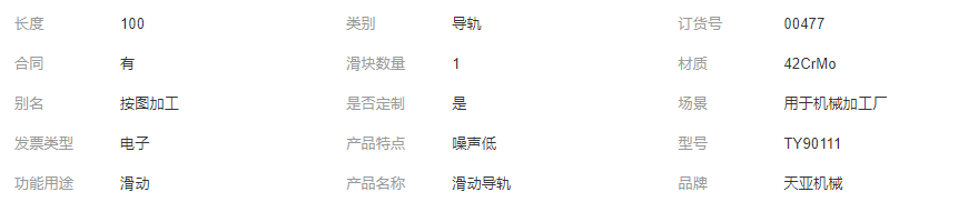 本网页所展示的有关【滑动导轨 TY90111 42CrMo 按图加工 用于机械加工厂 噪声低 天亚机械_导轨_南京天亚机械刀片有限公司】的信息/图片/参数等由全球零部件网的会员【南京天亚机械刀片有限公司】提供,由全球零部件网会员【南京天亚机械刀片有限公司】自行对信息/图片/参数等的真实性、准确性和合法性负责,本平台(本网站)仅提供展示服务,请谨慎交易,因交易而产生的法律关系及法律纠纷由您自行协商解决,本平台(本网站)对此不承担任何责任。您在本网页可以浏览【滑动导轨 TY90111 42CrMo 按图加工 用于机械加工厂 噪声低 天亚机械_导轨_南京天亚机械刀片有限公司】有关的信息/图片/价格等及提供【滑动导轨 TY90111 42CrMo 按图加工 用于机械加工厂 噪声低 天亚机械_导轨_南京天亚机械刀片有限公司】的商家公司简介、联系方式等信息。