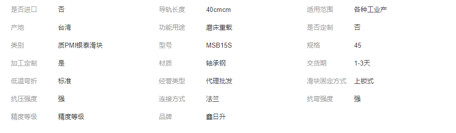 本网页所展示的有关【MSB15S高碳钢材质PMI银泰滑块销售 低噪音 微型线轨_导轨_成都鑫日升机械设备有限公司】的信息/图片/参数等由全球零部件网的会员【成都鑫日升机械设备有限公司】提供,由全球零部件网会员【成都鑫日升机械设备有限公司】自行对信息/图片/参数等的真实性、准确性和合法性负责,本平台(本网站)仅提供展示服务,请谨慎交易,因交易而产生的法律关系及法律纠纷由您自行协商解决,本平台(本网站)对此不承担任何责任。您在本网页可以浏览【MSB15S高碳钢材质PMI银泰滑块销售 低噪音 微型线轨_导轨_成都鑫日升机械设备有限公司】有关的信息/图片/价格等及提供【MSB15S高碳钢材质PMI银泰滑块销售 低噪音 微型线轨_导轨_成都鑫日升机械设备有限公司】的商家公司简介、联系方式等信息。