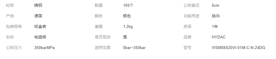 本网页所展示的有关【德国WSM06020W-01M-C-N-24DG液压电磁阀,贺德克HYDAC,当天发货_电磁阀_成都筱冠自动化设备有限公司】的信息/图片/参数等由全球零部件网的会员【成都筱冠自动化设备有限公司】提供,由全球零部件网会员【成都筱冠自动化设备有限公司】自行对信息/图片/参数等的真实性、准确性和合法性负责,本平台(本网站)仅提供展示服务,请谨慎交易,因交易而产生的法律关系及法律纠纷由您自行协商解决,本平台(本网站)对此不承担任何责任。您在本网页可以浏览【德国WSM06020W-01M-C-N-24DG液压电磁阀,贺德克HYDAC,当天发货_电磁阀_成都筱冠自动化设备有限公司】有关的信息/图片/价格等及提供【德国WSM06020W-01M-C-N-24DG液压电磁阀,贺德克HYDAC,当天发货_电磁阀_成都筱冠自动化设备有限公司】的商家公司简介、联系方式等信息。