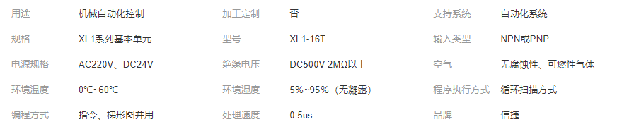 本网页所展示的有关【台达 松下 永宏 信捷PLC XL1系列基本单元 XL1-16T 可编程控制器_控制器_宁波鸿信自动化设备有限责任公司】的信息/图片/参数等由全球零部件网的会员【宁波鸿信自动化设备有限责任公司】提供,由全球零部件网会员【宁波鸿信自动化设备有限责任公司】自行对信息/图片/参数等的真实性、准确性和合法性负责,本平台(本网站)仅提供展示服务,请谨慎交易,因交易而产生的法律关系及法律纠纷由您自行协商解决,本平台(本网站)对此不承担任何责任。您在本网页可以浏览【台达 松下 永宏 信捷PLC XL1系列基本单元 XL1-16T 可编程控制器_控制器_宁波鸿信自动化设备有限责任公司】有关的信息/图片/价格等及提供【台达 松下 永宏 信捷PLC XL1系列基本单元 XL1-16T 可编程控制器_控制器_宁波鸿信自动化设备有限责任公司】的商家公司简介、联系方式等信息。
